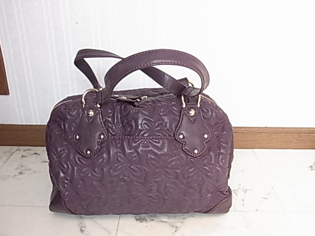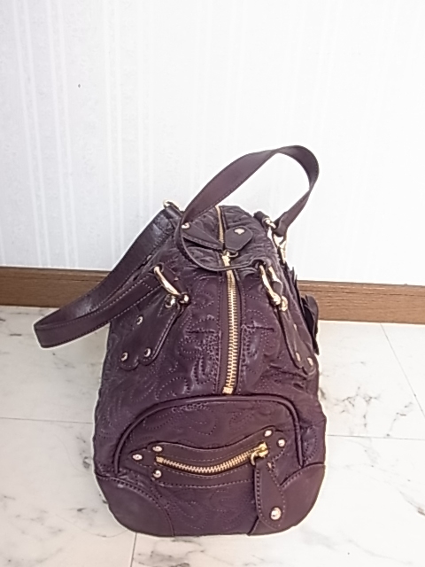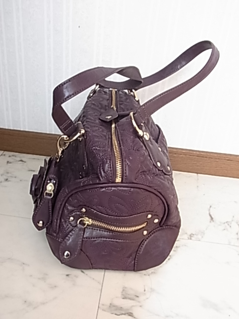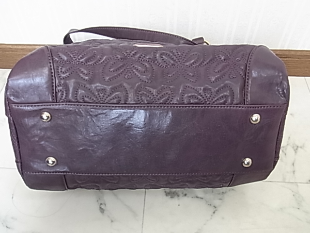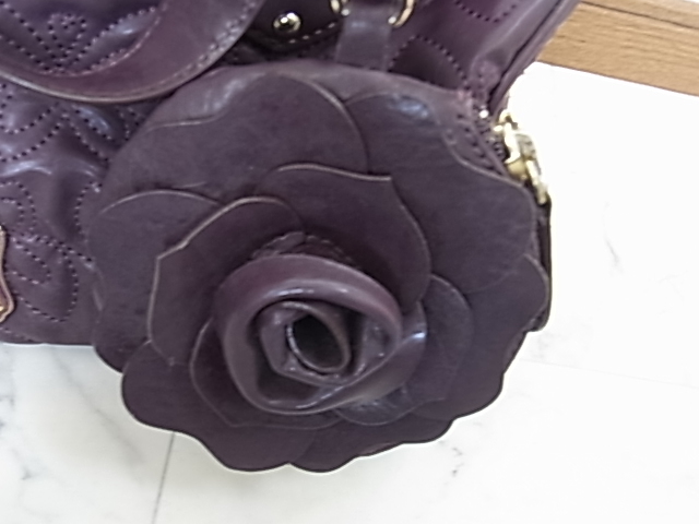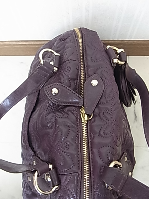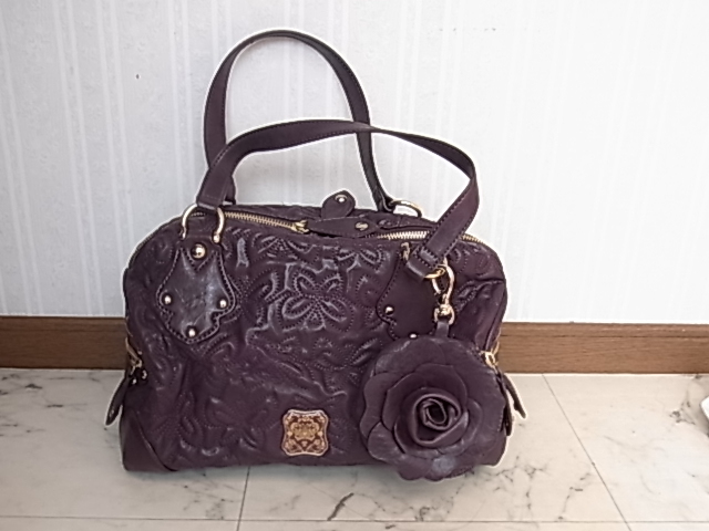 ANNASUI アナスイ 総柄型押し メアリーシリーズ パープル 紫色 ボストンバッグ 薔薇のバッグチャーム付き 高級感 可愛い 収納抜群
