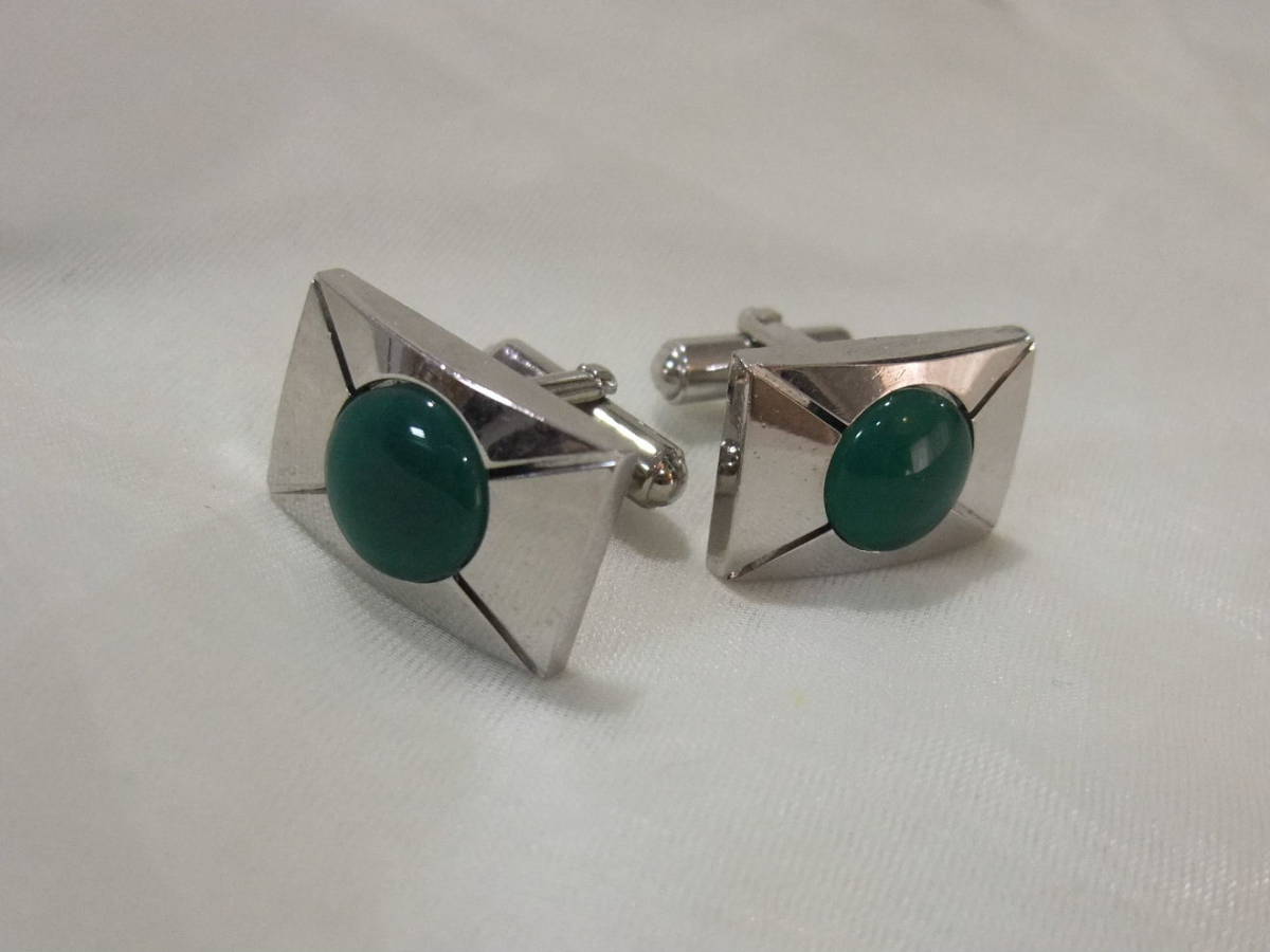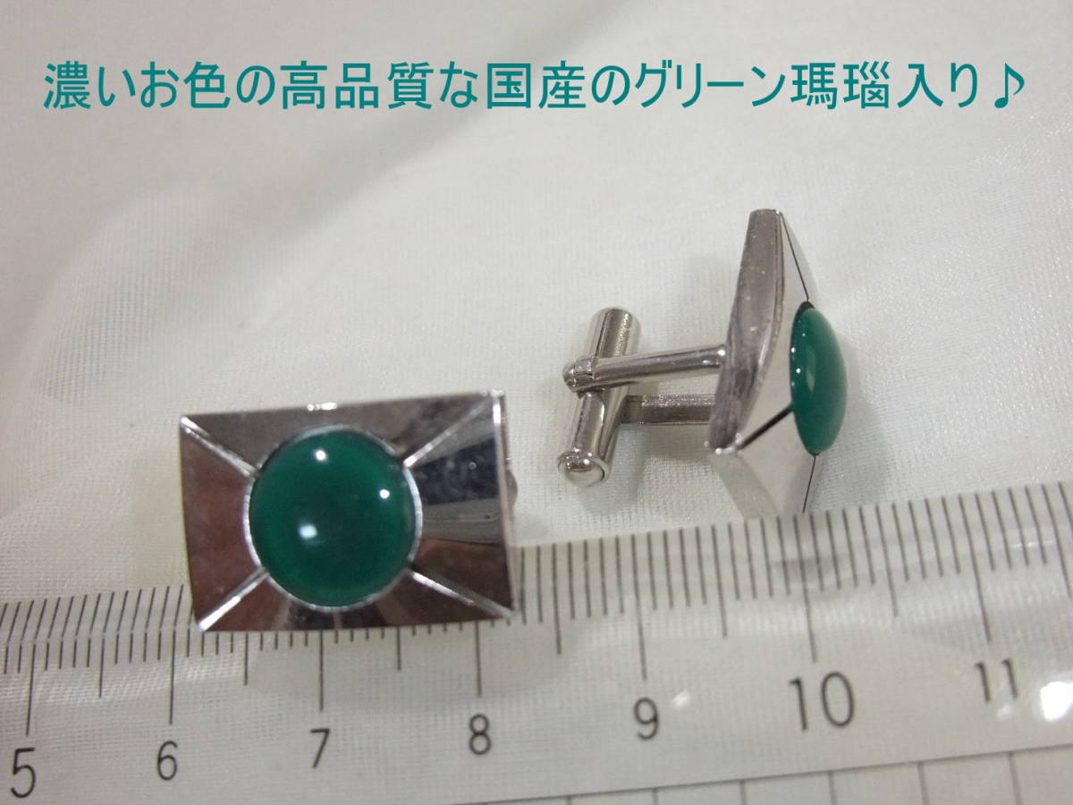 極上色♪グリーンアゲート緑瑪瑙のレトロビンテージデザイン天然石パワーストーン入シンプル系カフスボタンカフリンクス5