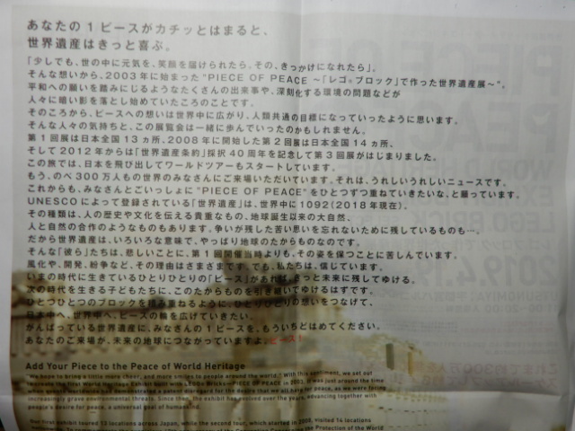 ・PIECE OF PEACEレゴブロックで作った世界遺産展です