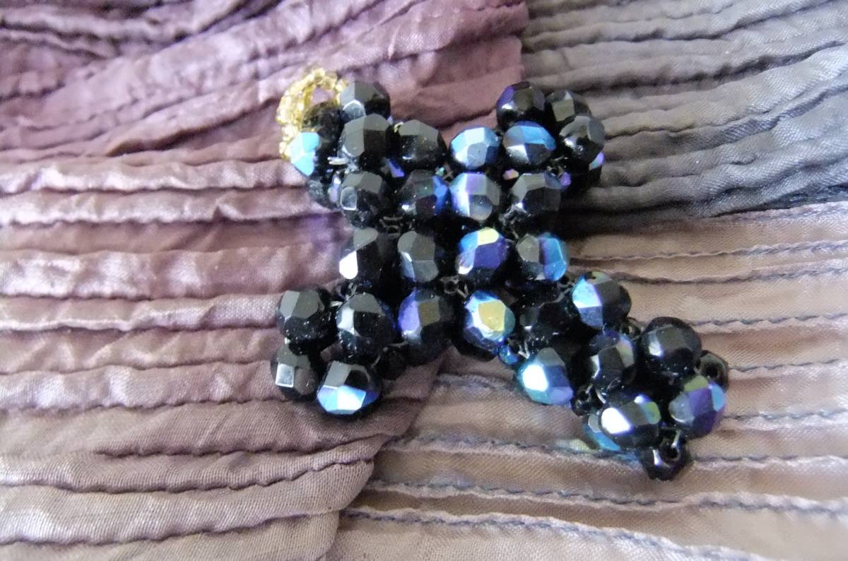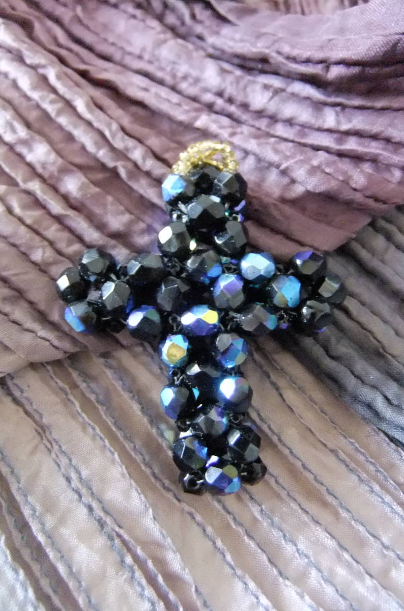 ハンドメイド品ファイアポリッシュビーズのクロス型ペンダントトップ。
