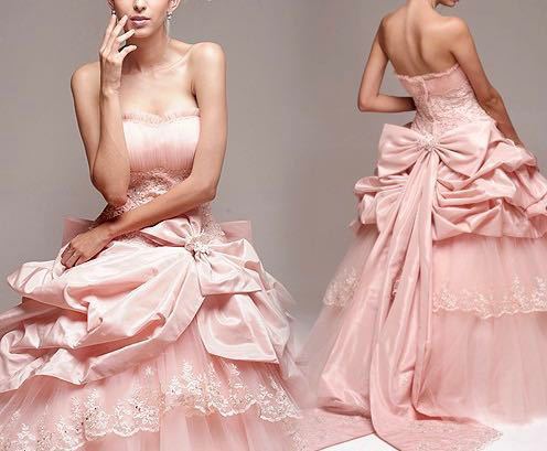 本命花嫁ドレス 可愛いリボン色変更無料 お色直しカラードレス 花嫁 サイズオーダー無料 挙式 前撮り結婚衣装