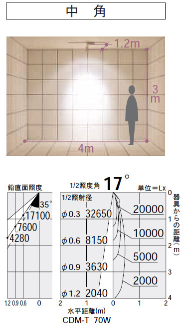 | 仕様 | アルミダイカスト オフホワイト塗装 (内面黒塗装) | 70W(G12) CDM-T 70W(G12) HCI-T | 首振90度 回転360度 | 安定器内蔵 | 1.5㎏ |