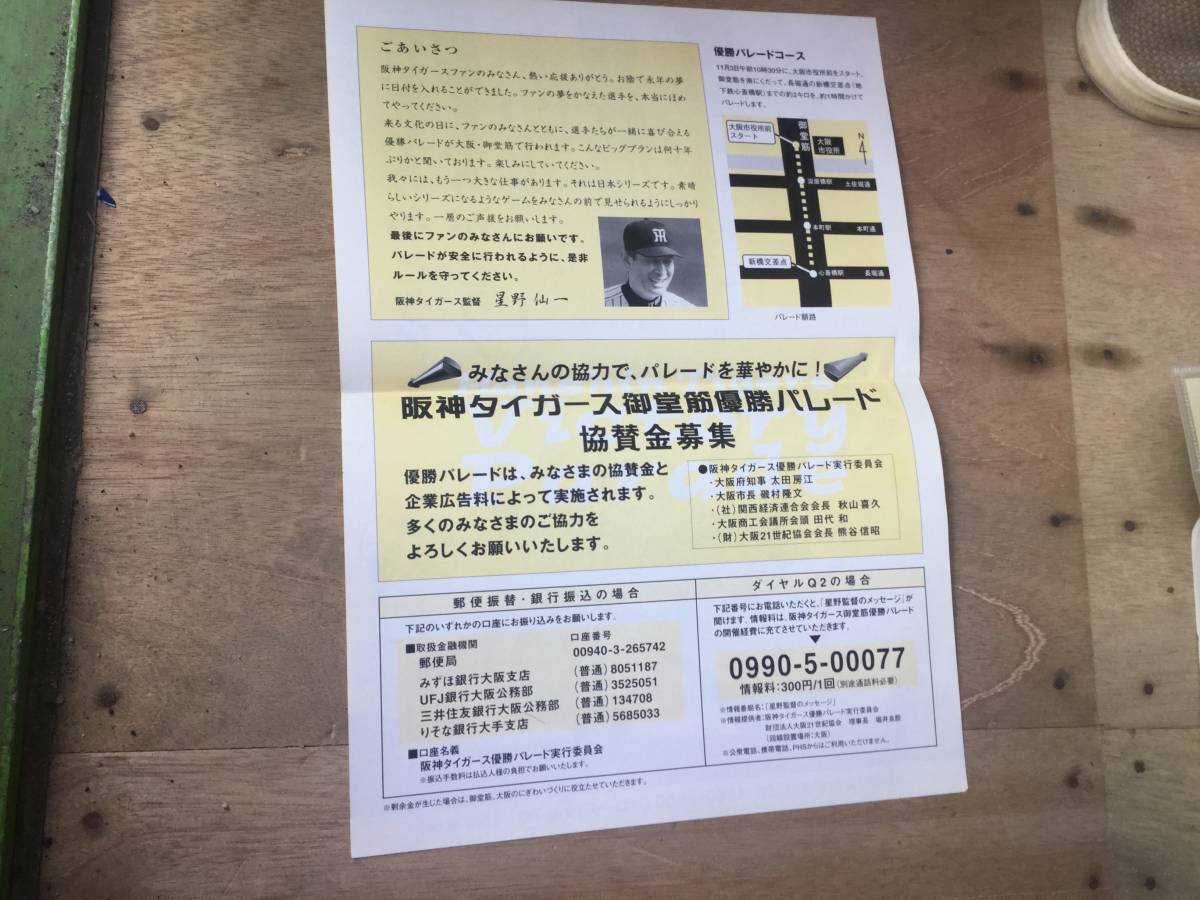 平成15年 阪神タイガース 御堂筋優勝パレード 2003 チラシ