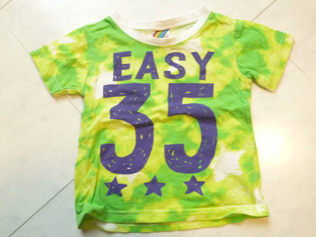 美品 黄緑×黄 マーブル模様 半袖 Tシャツ 80