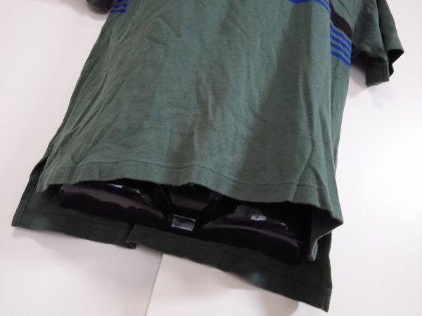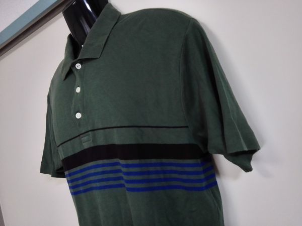 渋いグリーンのやわらかいコットンカットソー生地のポロシャツです。