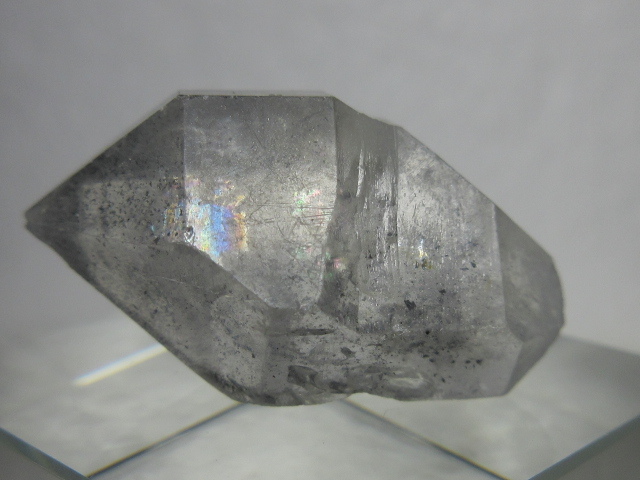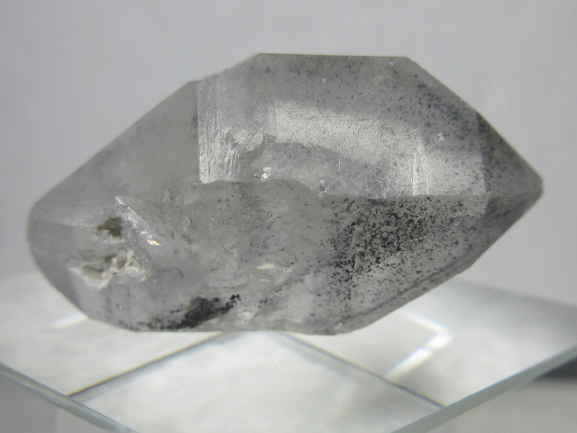 ご覧のように主に両端がポイント(ダブルターミネーター) となっており、内部に黒い内包物(炭素やマンガンと言われる) や太古の水を湛えていることが多い、大変に魅力的な水晶です。