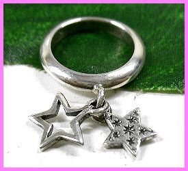 シルバー925銀の透かしスターチャーム二つ星 ピンキーリング/3号ラスト1個