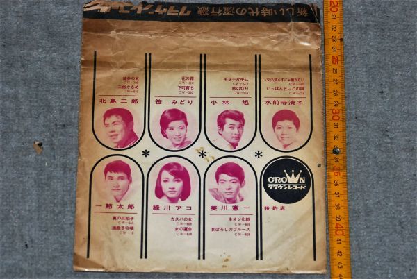 d1018) 昔のクラウンレコード袋 由美かおる 水前寺清子 緑川アコ 北島三郎ほか