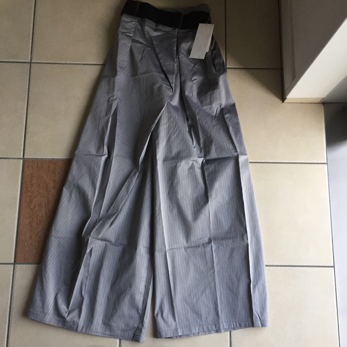 新品タグ 未着 Luftrobe ルフトローブ 綿混 ストライプ柄 ベルト付きシャイニーワイドパンツ