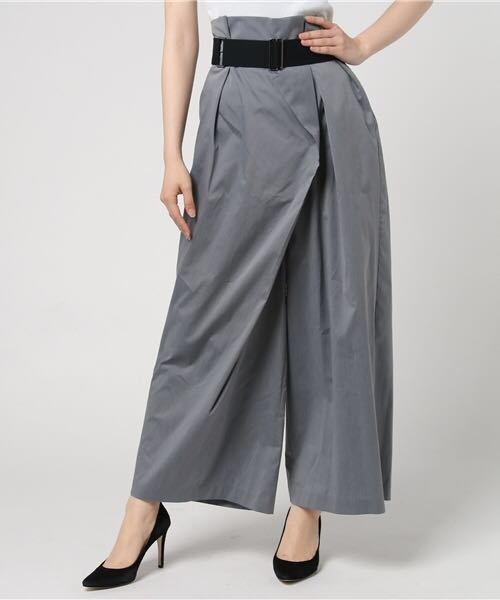 フロントにデザインベルトが施されたワイドパンツです。お持ちのカットソーに合わせるだけでマニッシュながら品のあるワンランク上のコーディネートが完成します。デイリーユースからオフィススタイル問わず着用できるため、ワードローブとして重宝いただけます。
