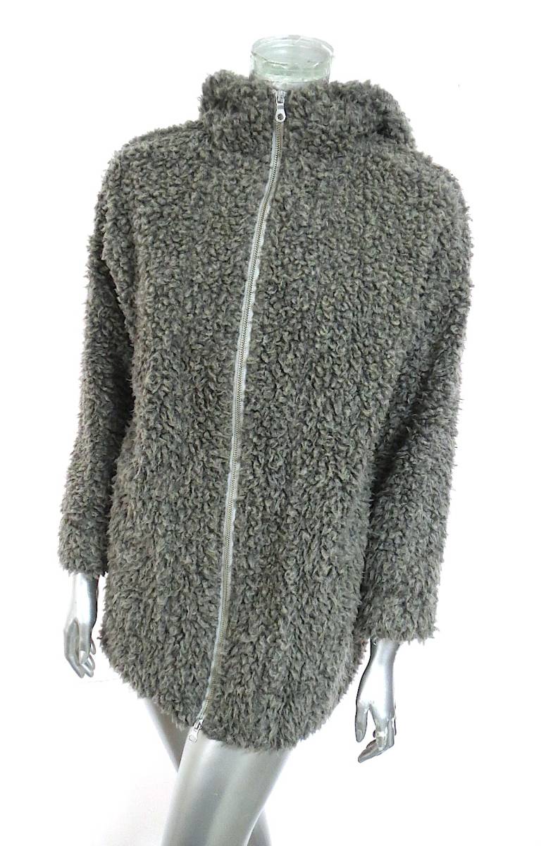 二点落札で送料無料! I020 I am I アイアムアイ グレーのもこもこ フード付き ブルゾン レディース フリーサイズ アウター 上着