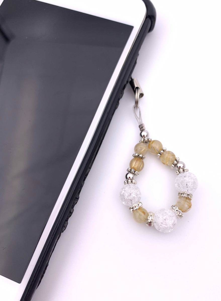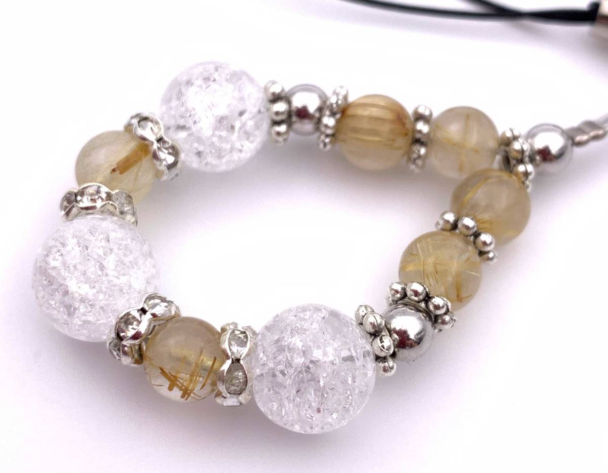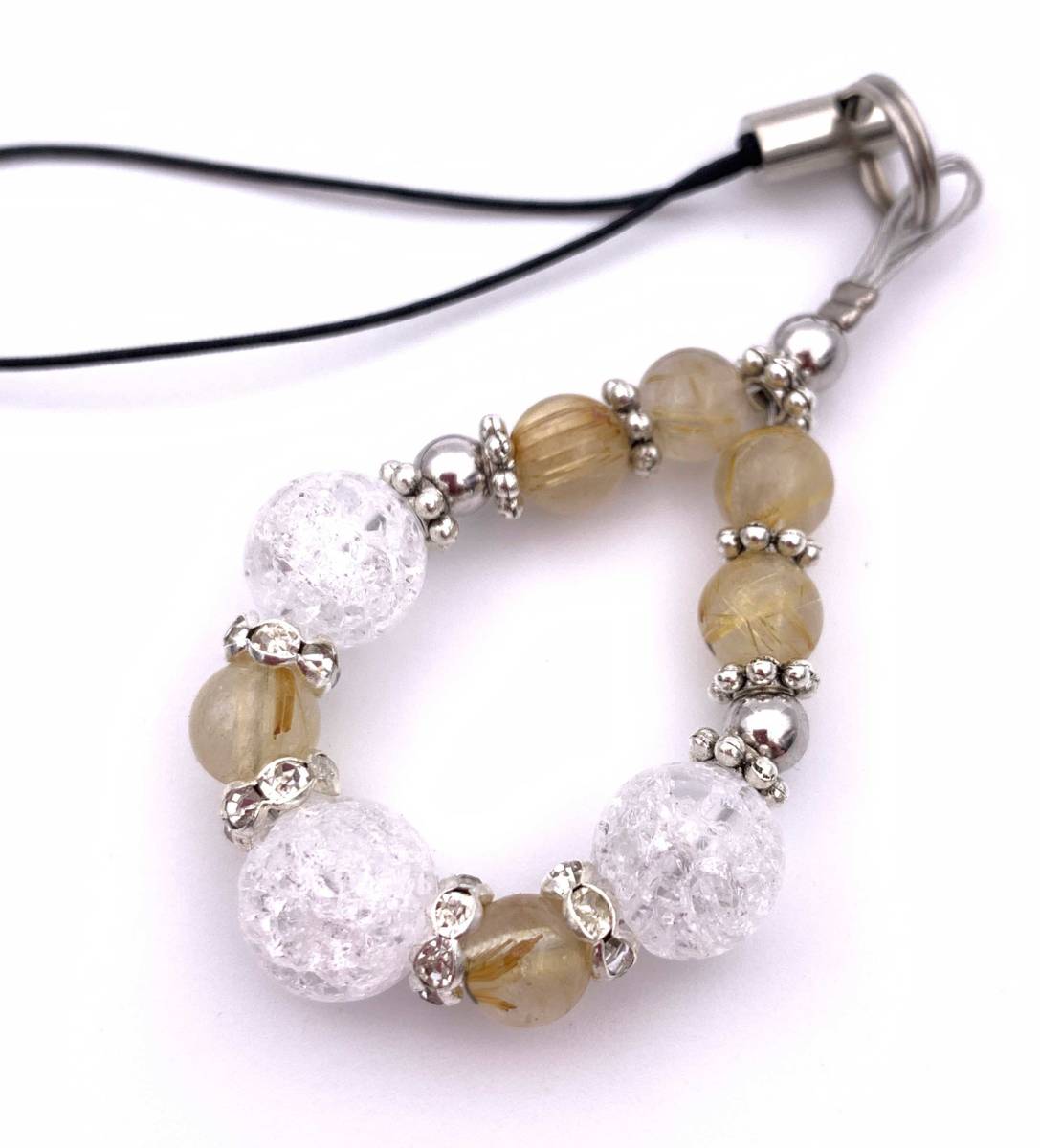 天然石ルチルクォーツ&クラック水晶のストラップ