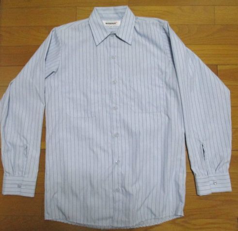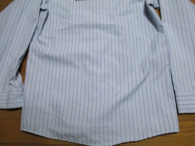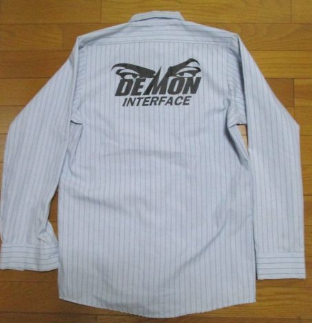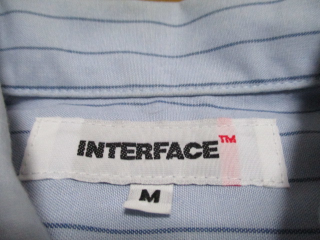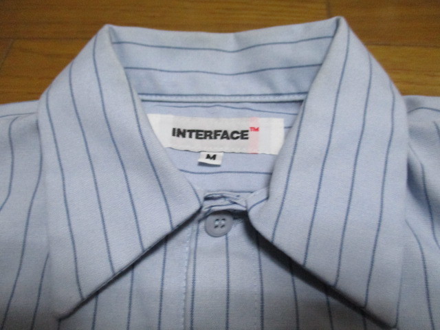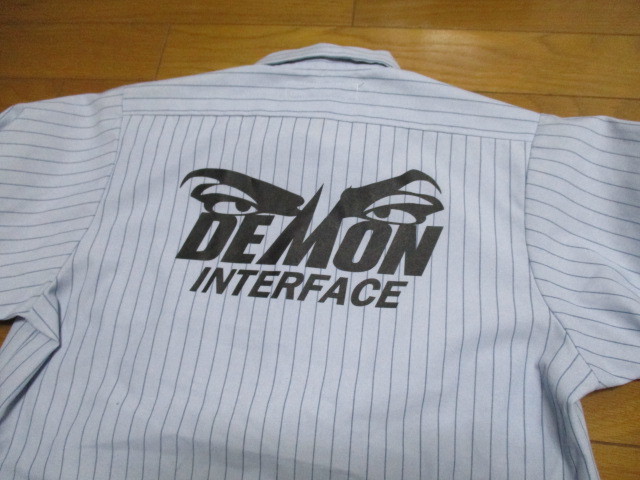 INTERFACE DEMON サイズM 長袖シャツ ピンストライプ ワークシャツ デカロゴ 青系 水色 日本製