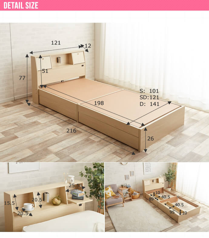 サイズ:フレーム幅:121cm×奥行き:215cm×高さ:77cm