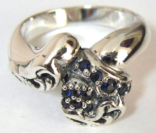 ◆ シルバー925 スクロール コブラ ハートリング pave サファイヤ 10号 ★ ハートコブラ ハートスクロールコブラ リング 新品 未使用 ◆