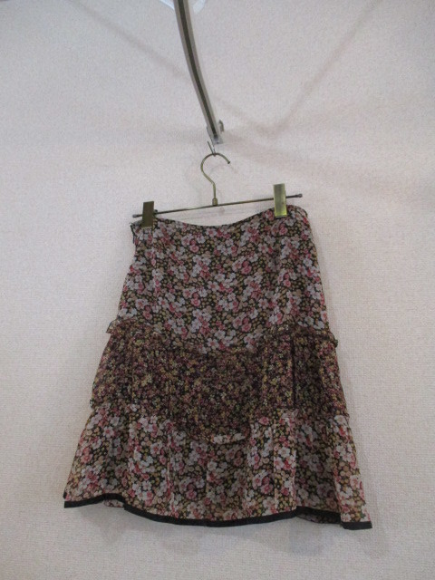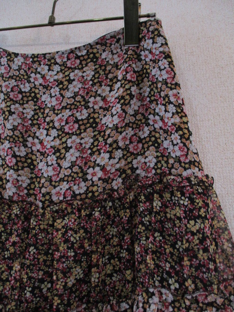 商品名 | PEYTONPLACE黒地花柄シフォン膝丈フレアスカート(USED)20119 |