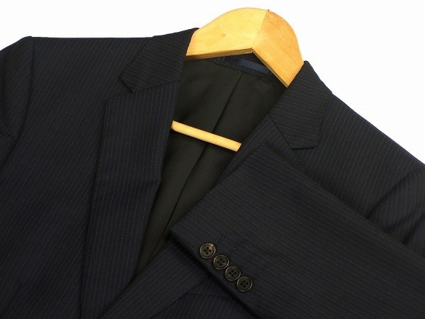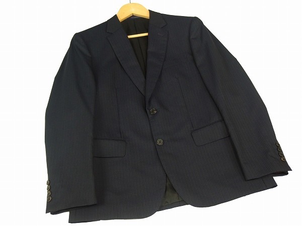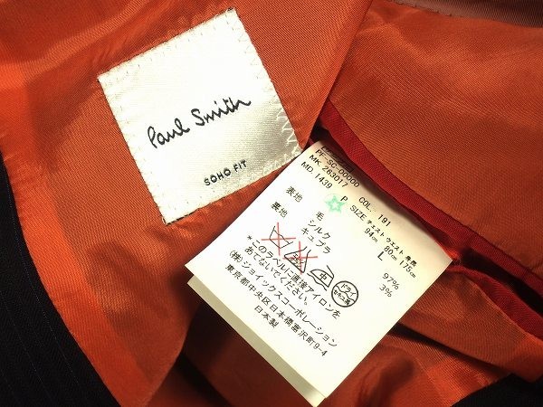 極美品*Paul Smith ポールスミス*SOHO FIT*濃紺ピンスト*シルク混*メンズ*2釦*テーラードシングルジャケット*L-175*春秋