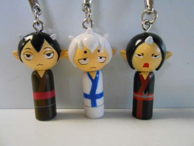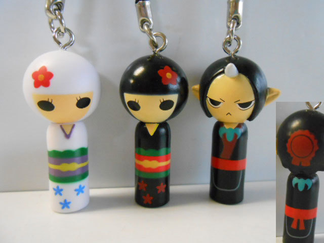 1.茄子 2.唐瓜 3.一子 4.二子 5.鬼灯 6.鬼灯(子供) ◇和テイストで大人気の地獄のこけし根付第2弾 |
