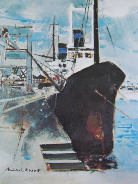 ミッシェル・ロッド、ブルターニュの港、超希少額装用画、新品額装付、送料込み、iafa