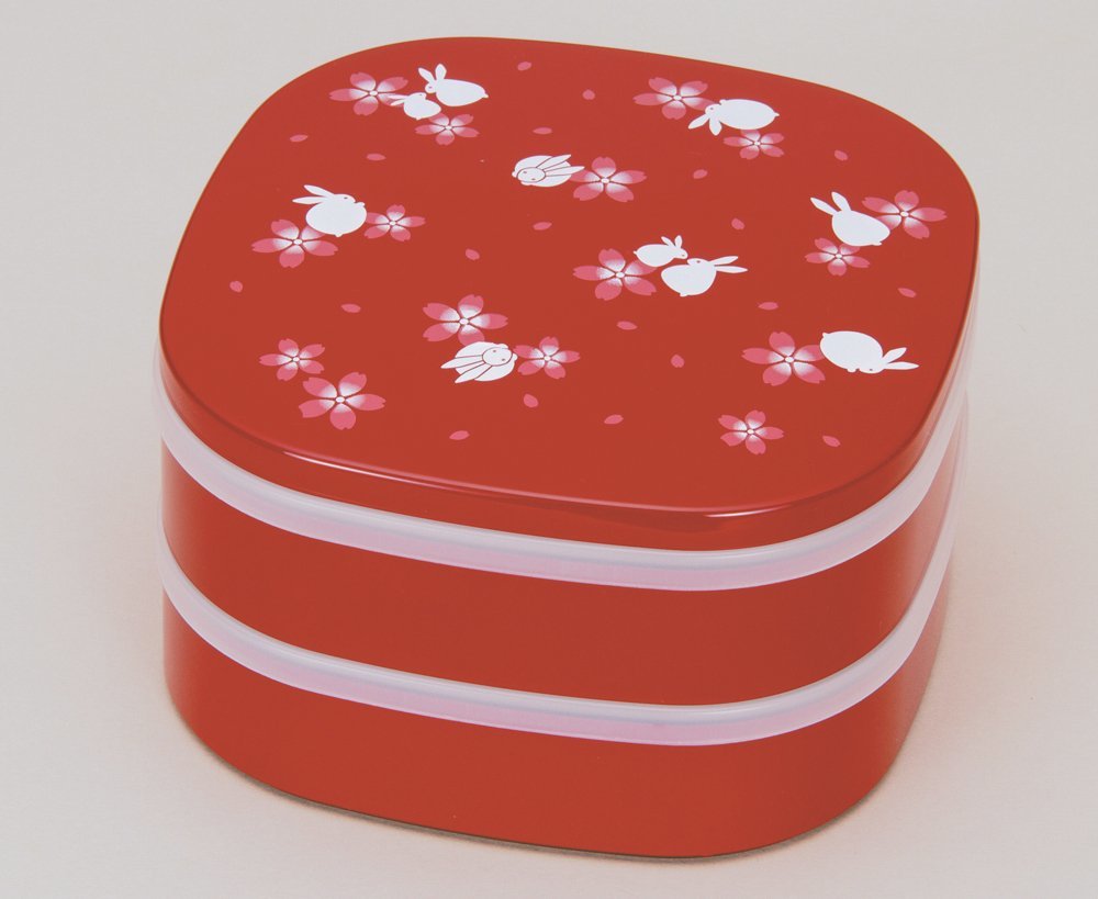 ★お買い得★くつわ★オードブル★ 19cm★ 桜うさぎ ★赤★ うさぎ★パッキン付き★お重★送料無料です。