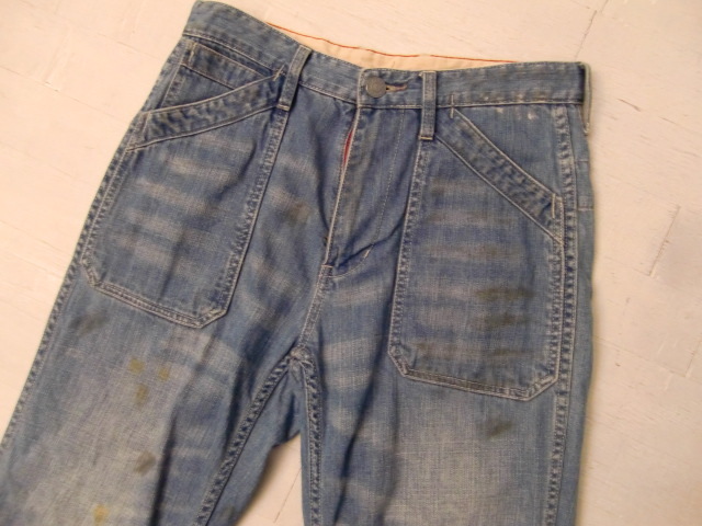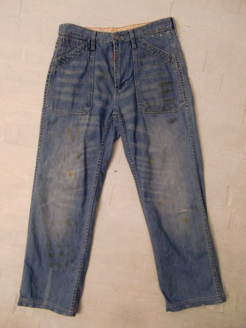 送料無料 デニム ベイカーパンツ カーゴパンツ ペンキ加工 ヴィンテージ加工 ワークパンツ カーゴパンツ デニムパンツ USED加工