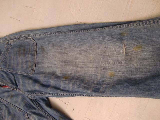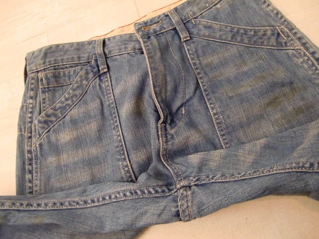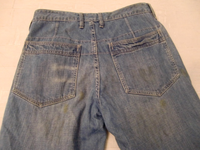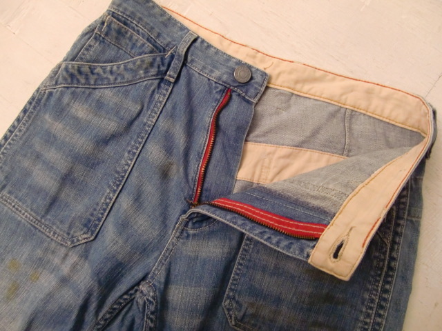 古着屋さんで購入された感じの良いヴィンテージ加工されたベイカーデニムパンツ。