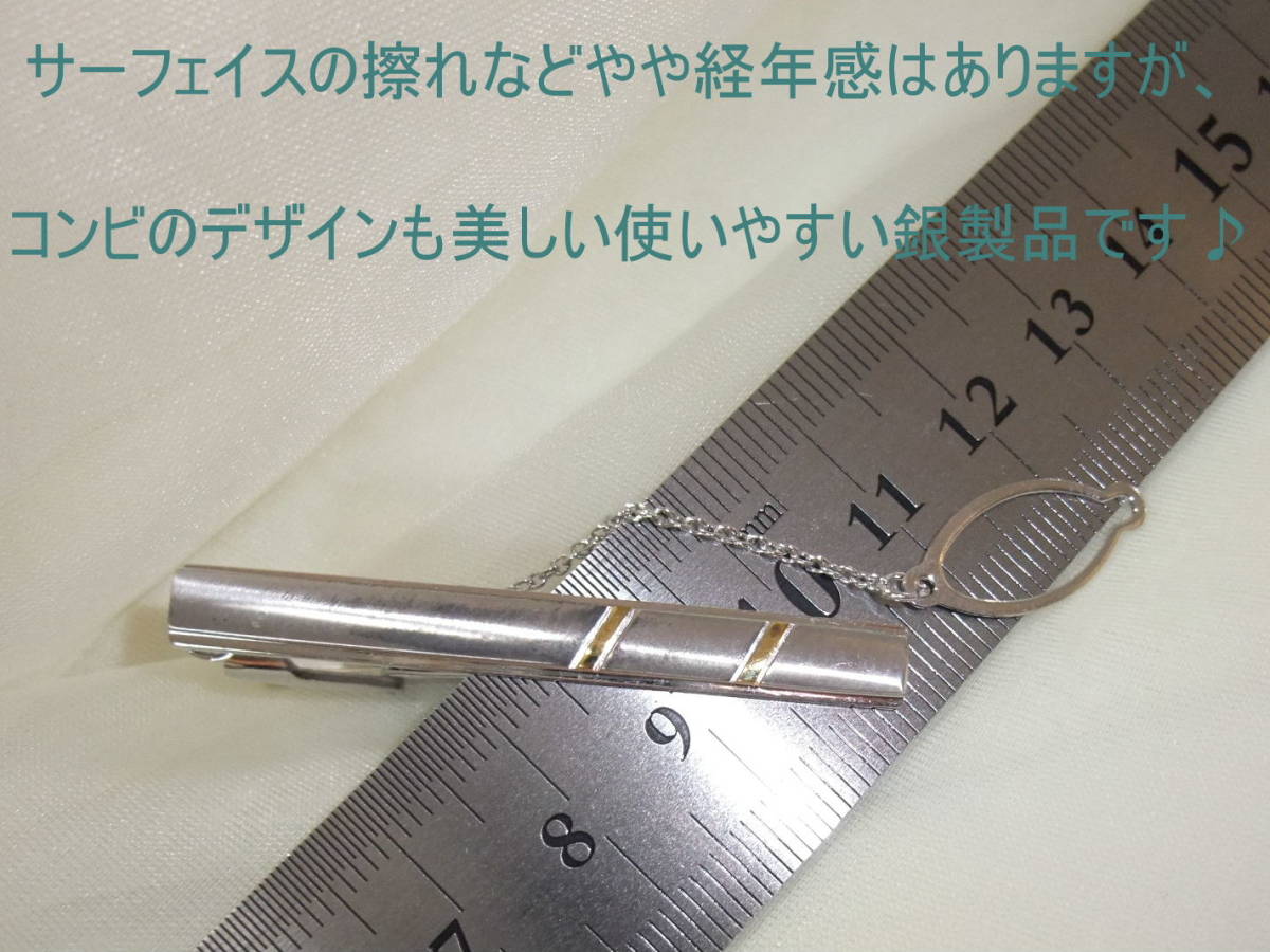 タイバー銀製品 シルバー 製 のシンプルネクタイピンすっきり 粋な デザインシェイプ レトロ ビンテージデザイン粋でちょい悪親父系☆137③