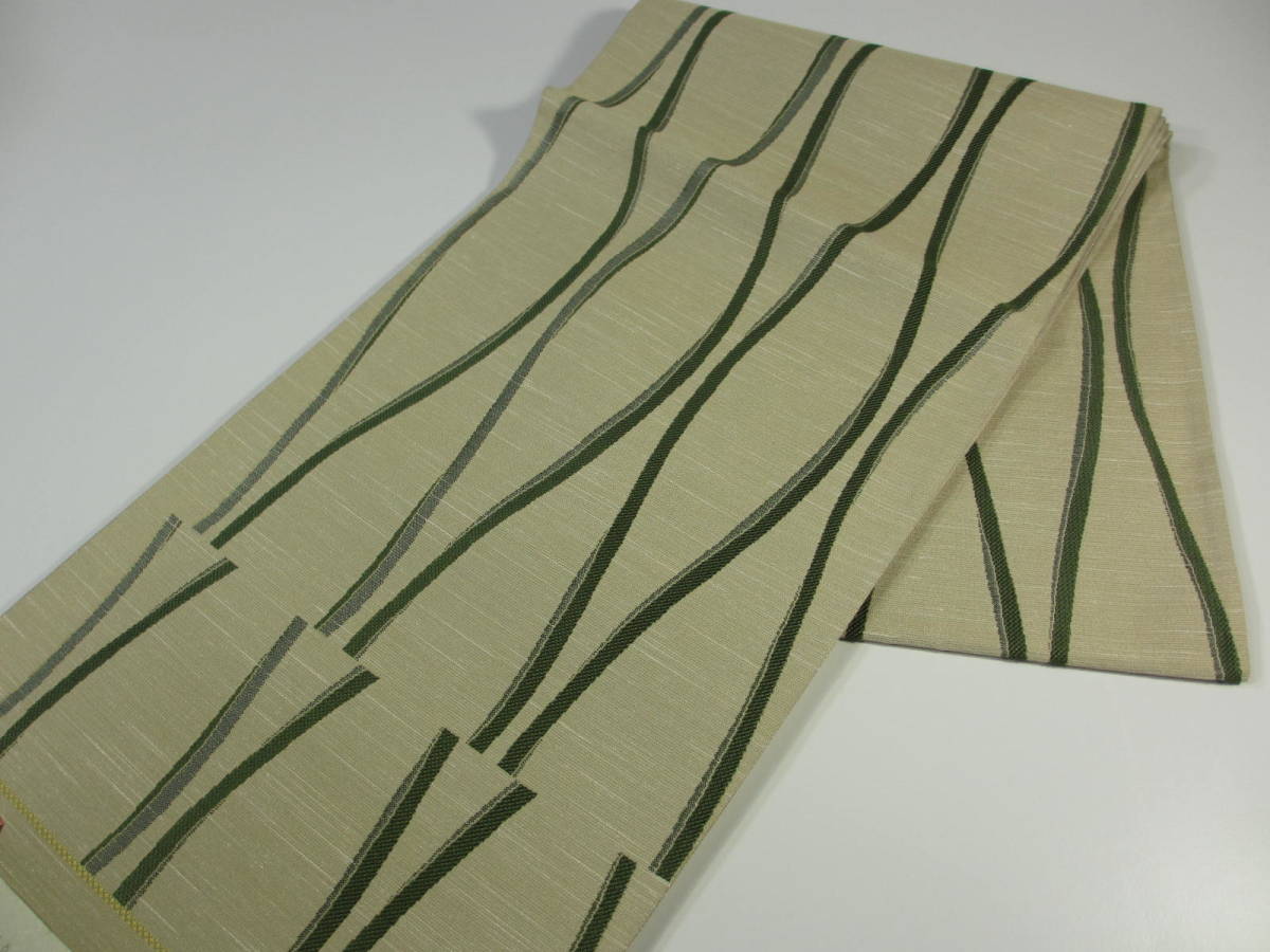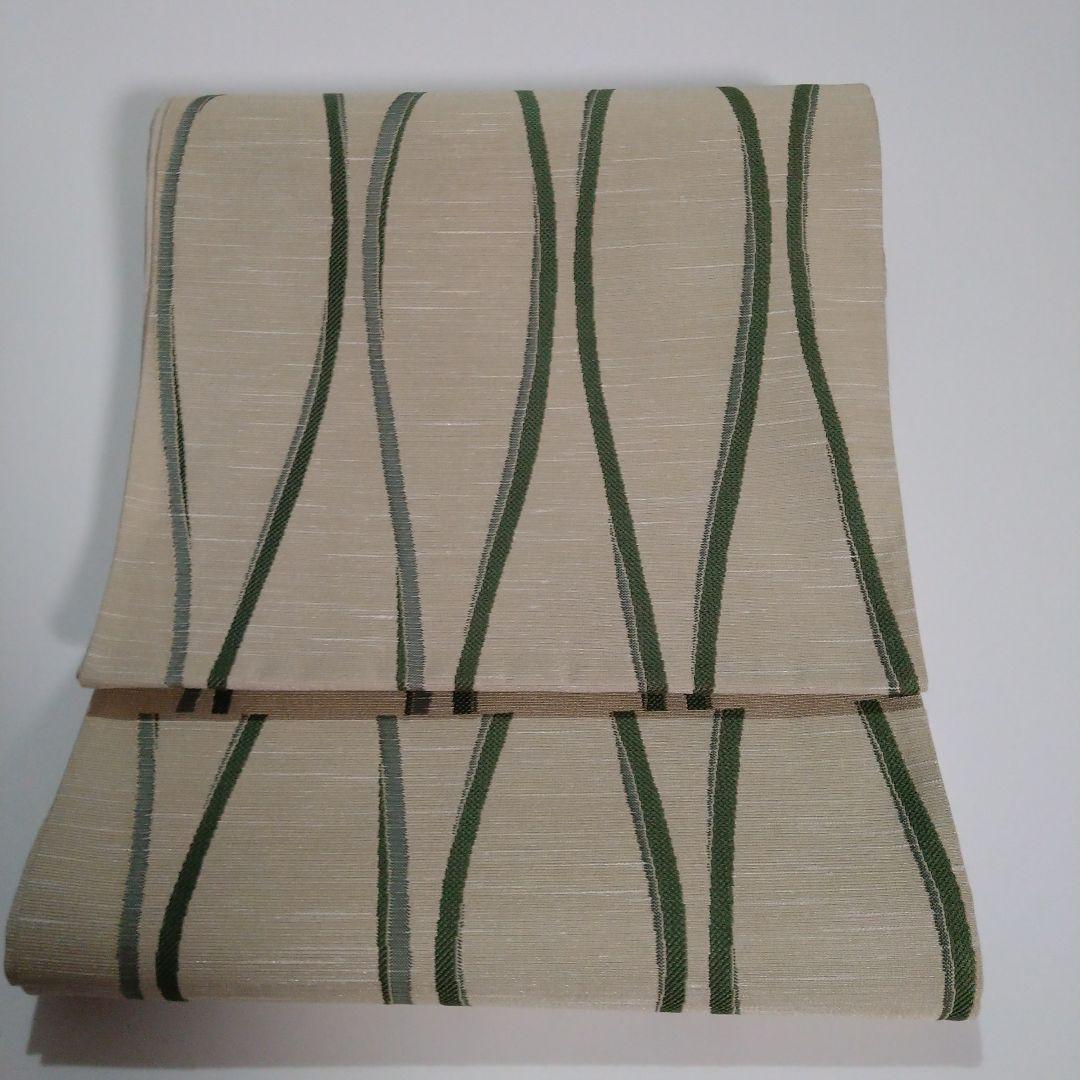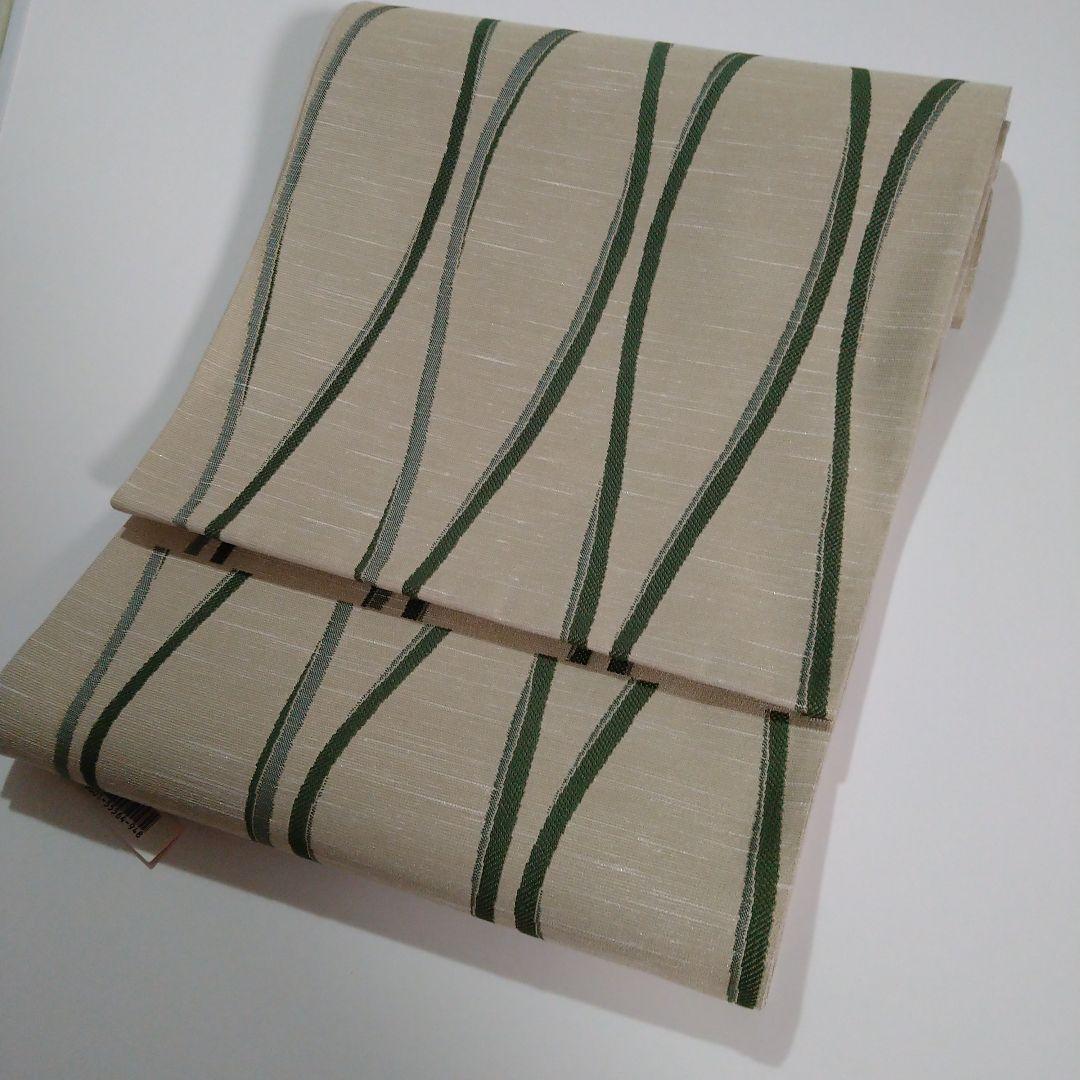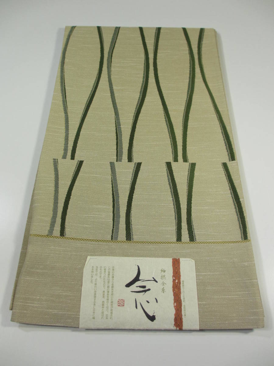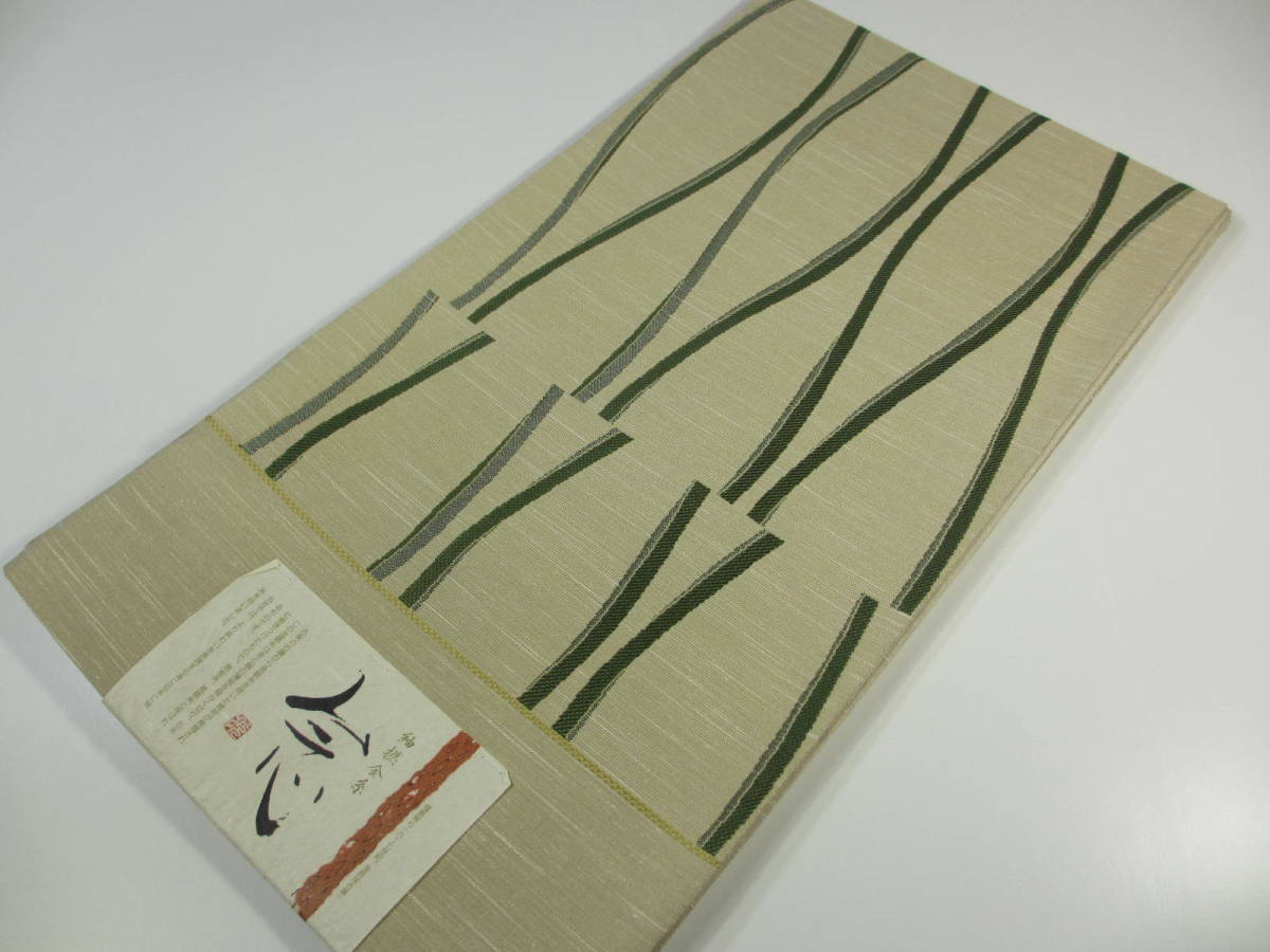 商品説明 | こちらの金糸銀糸は金と銀の薄板を細かく切り、芯糸に(細糸)に巻きつけたもので、撚金糸、撚銀糸と呼ばれている糸を使用して織られております。 少しハリのある帯です。 (絹・金糸銀糸は除く:未仕立て品:55564948 ) 販売価格は、28万でした。 |