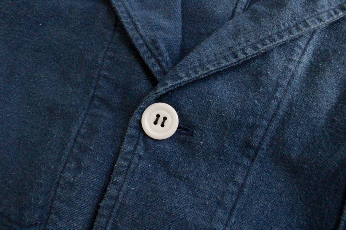 3ポケットのシンプルなコート、インディゴで後染めされています。