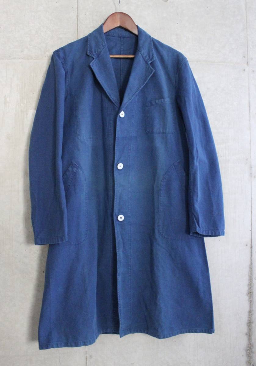 50s【 フランス ビンテージ 】インディゴダイ コットン ツイル ワークコート / 藍染 ブルー / ヨーロッパ アトリエ