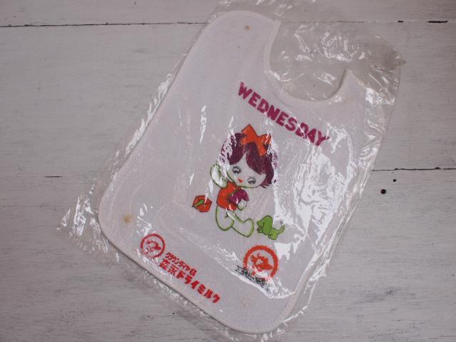 レトロ*クラウンダイヤG森永ドライミルク オマケ?女の子柄スタイ・WEDNESDAY・水曜日☆ノベルティー