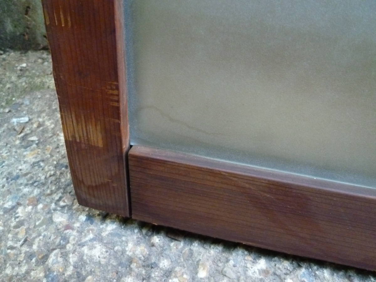 こちらはビンテージの木製の引き戸となります。レトロなガラスが付いています。ガラス上部に二箇所、真ん中に一箇所の欠けがあります。築100年の京都にある古民家で使用されていました。1枚です。高さ111.5cm、横幅87.5cm、奥行3cmです。アンティークな建具です。清掃しておりますが、傷、汚れなどございます。傷や欠損は写真をご参考ください。検品時チェックしておりますが、見落としや、保管時にダメージなどが生じる場合がございます。使用に際してメンテナンスや修繕が必要になることも多く、その場合はお客様自身でお願いいたします。以上、ご了承の上でご入札お願いいたします。
