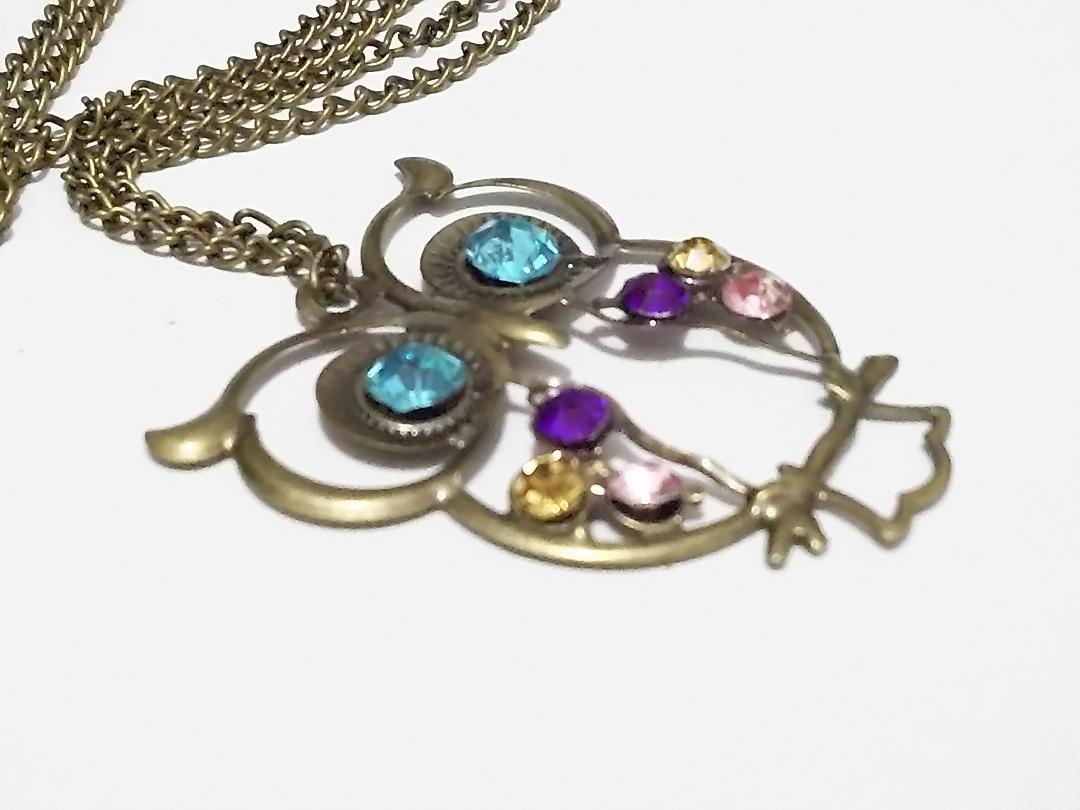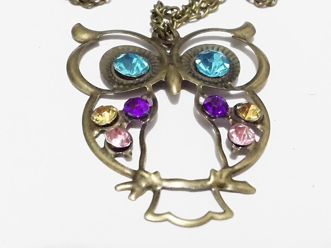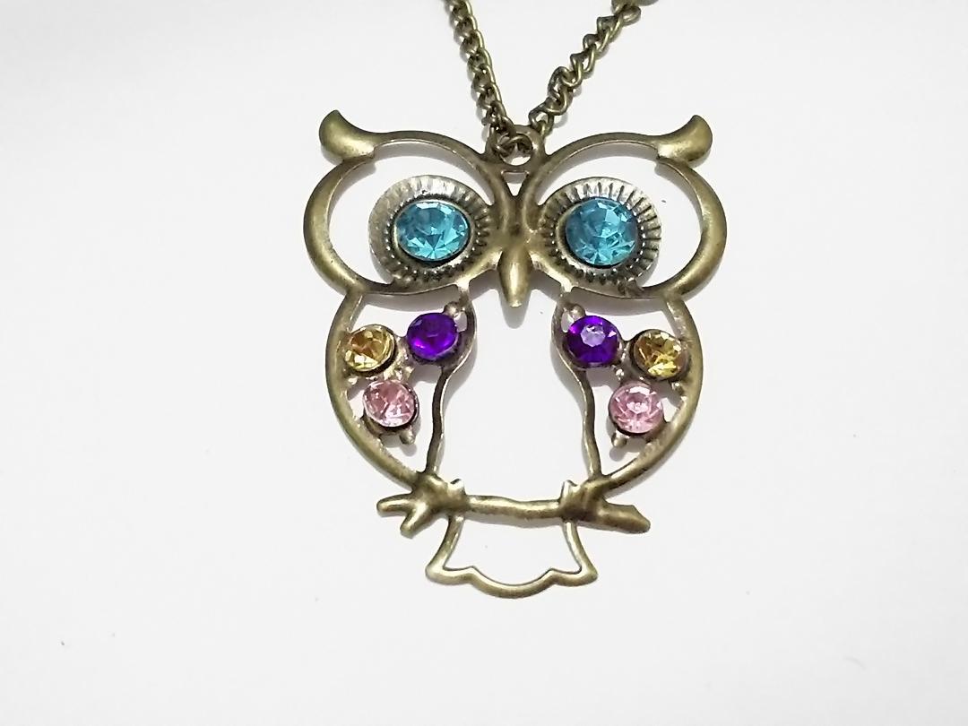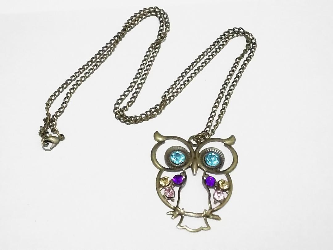 ラインストーンが綺麗なふくろうペンダントネックレスです!