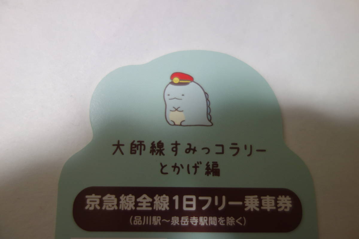 京急線全線1日フリー乗車券です。京急×すみっコぐらしの大師線すみっこラリーの記念乗車券です。