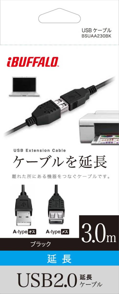 @【即決】◆BUFFALO USB2.0延長ケーブル◆USBケーブル 3.0m (A to A) ブラック// BSUAA230BK