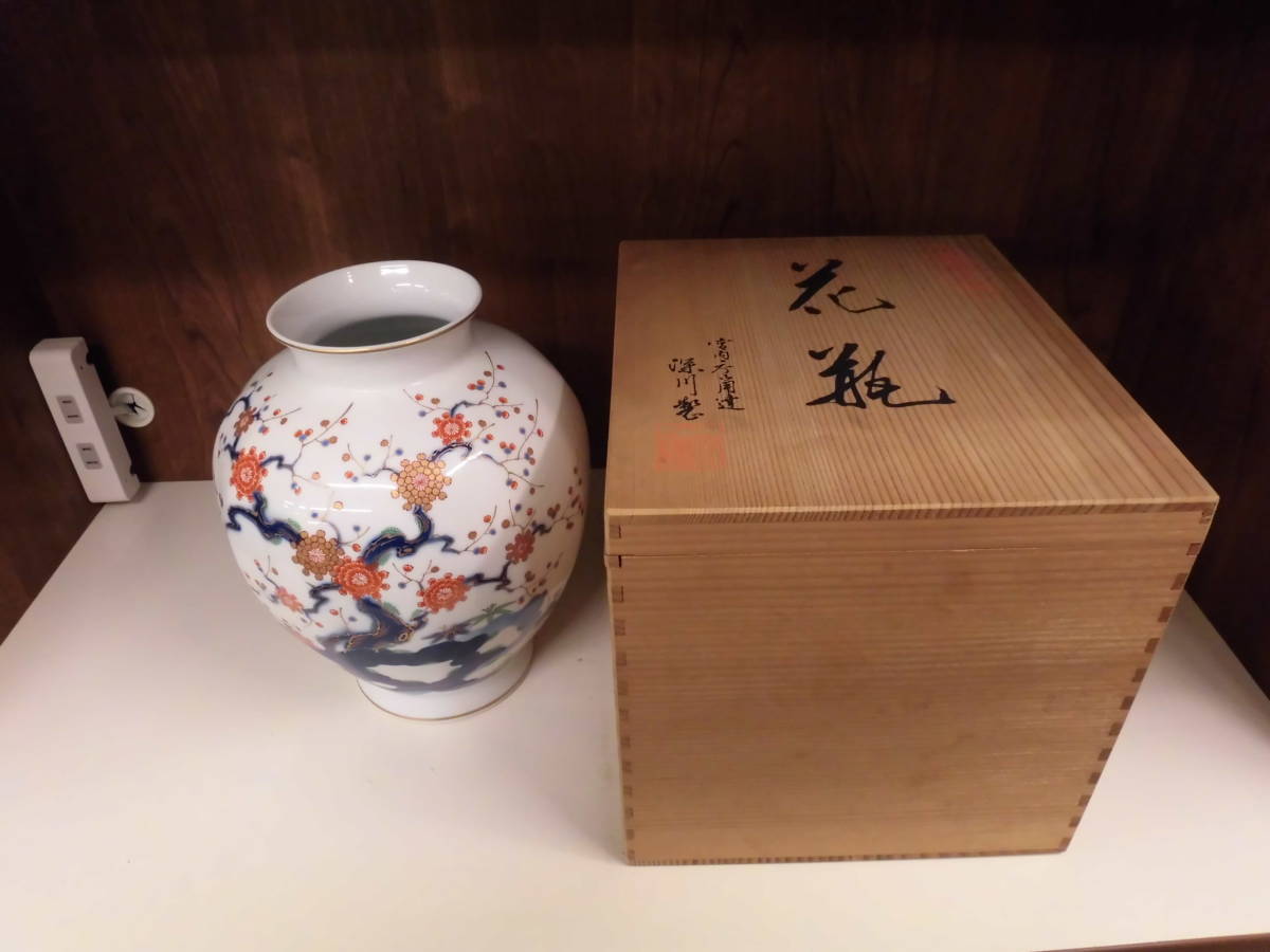 深川製磁・花入れ 花瓶・美品   / 宮内庁御用達・ ビンテージ サイズ 幅22×間口10.5×高26㎝
