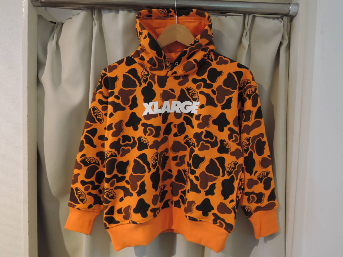 X-LARGE エクストララージ XLARGE Kids 裏起毛 迷彩ロゴ 総柄パーカー オレンジ 130 キッズ 最新 ZOZOTOWN 公式HP 完売 人気品 送料込