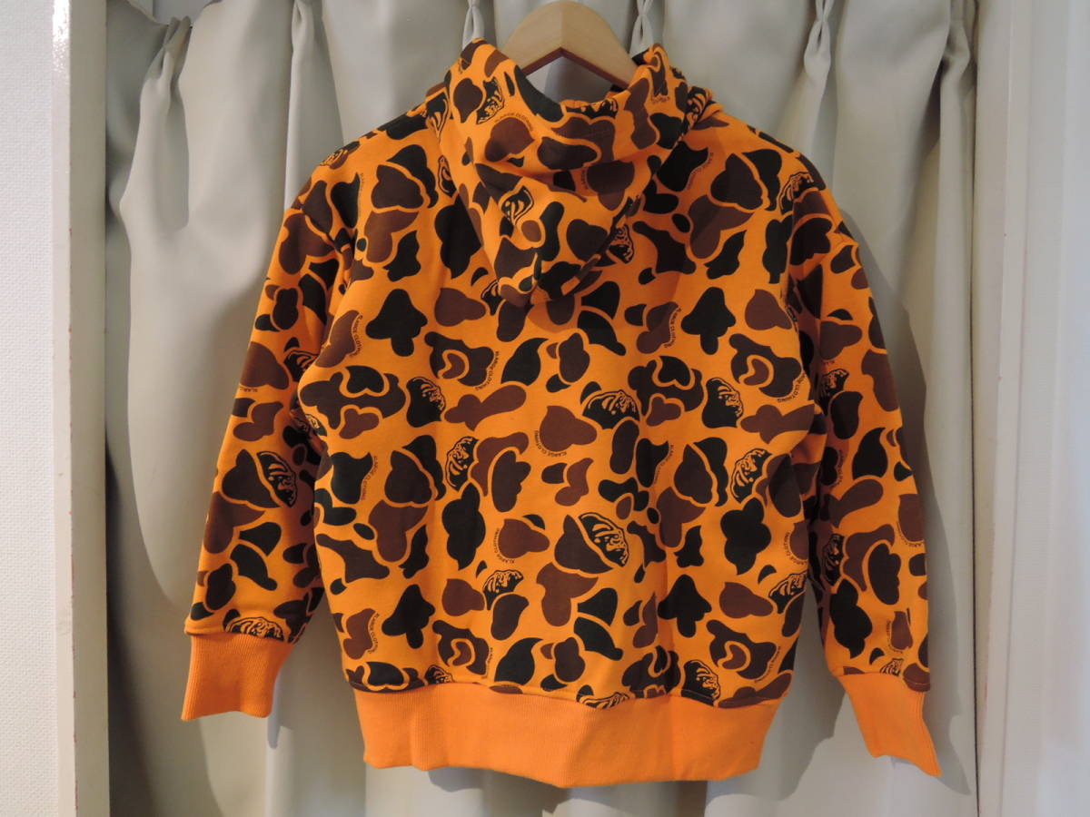 商品は 迷彩ロゴ 総柄パーカーでキッズ用のフーディーです。