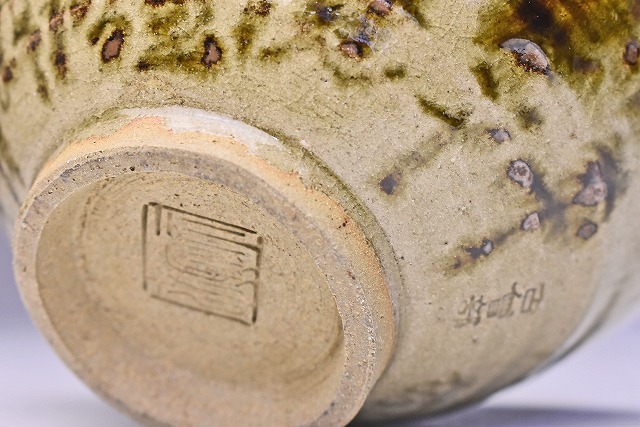古曽部焼 の 作品です。 味わいのある 漢詩 が 景色となった 逸品です。 内容 は 読み解けませんでしたが 漢詩で 本作の説明を していると思われる 板が 入っています。