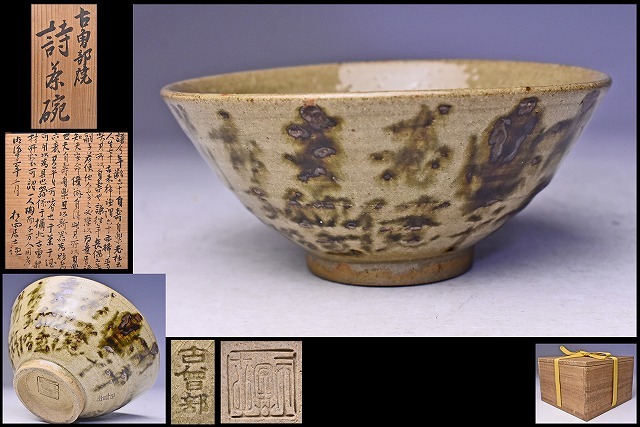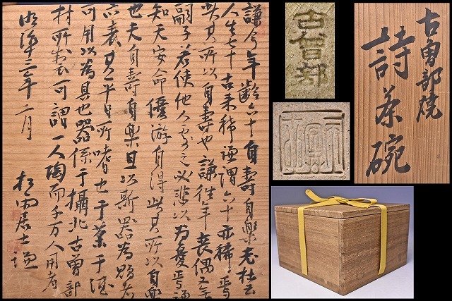 時代 古曽部焼 ★ 鉄絵詩文茶碗 ★ 漢詩書板 ★ 木箱 ★ 小堀遠州七窯 ★ 侘び感のある逸品 ★ 茶道具 ★