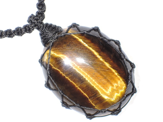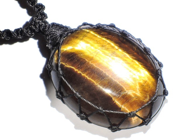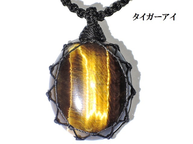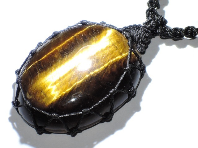 ★黄金の輝き★天然石タイガーアイネックレス★虎目石★マクラメ編み★kamesan