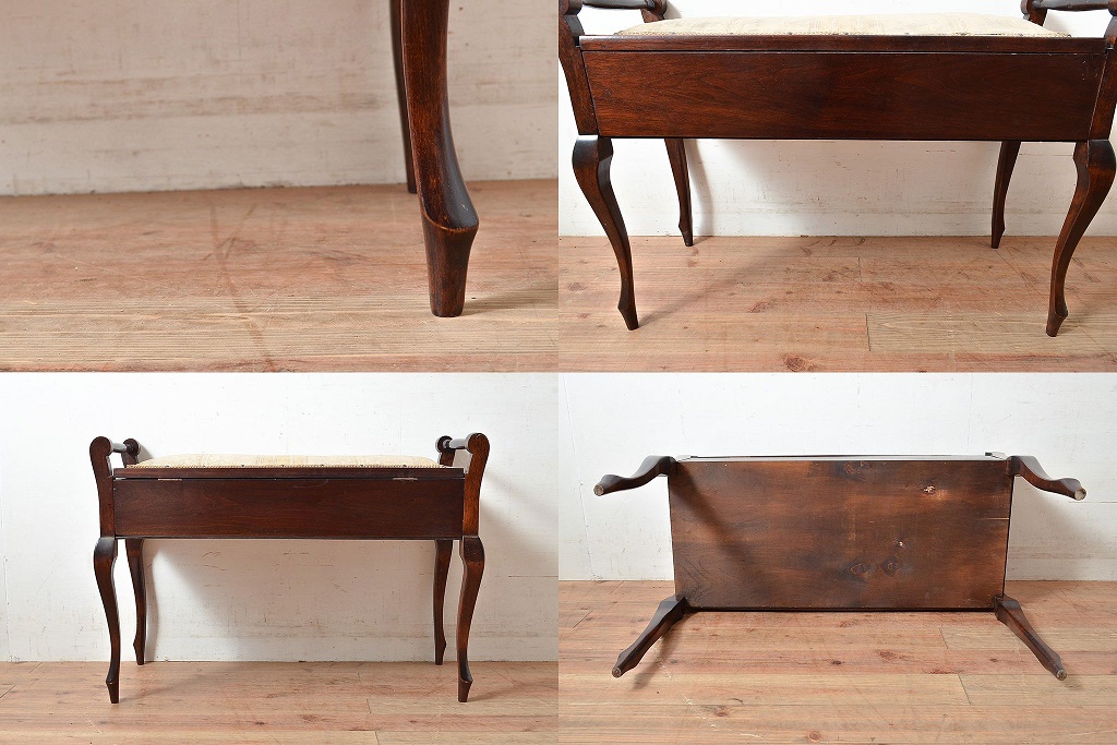R-047708 イギリスアンティーク 細い脚がエレガントさを演出するバーチ材製のベンチ(イス、椅子)(R-047708)