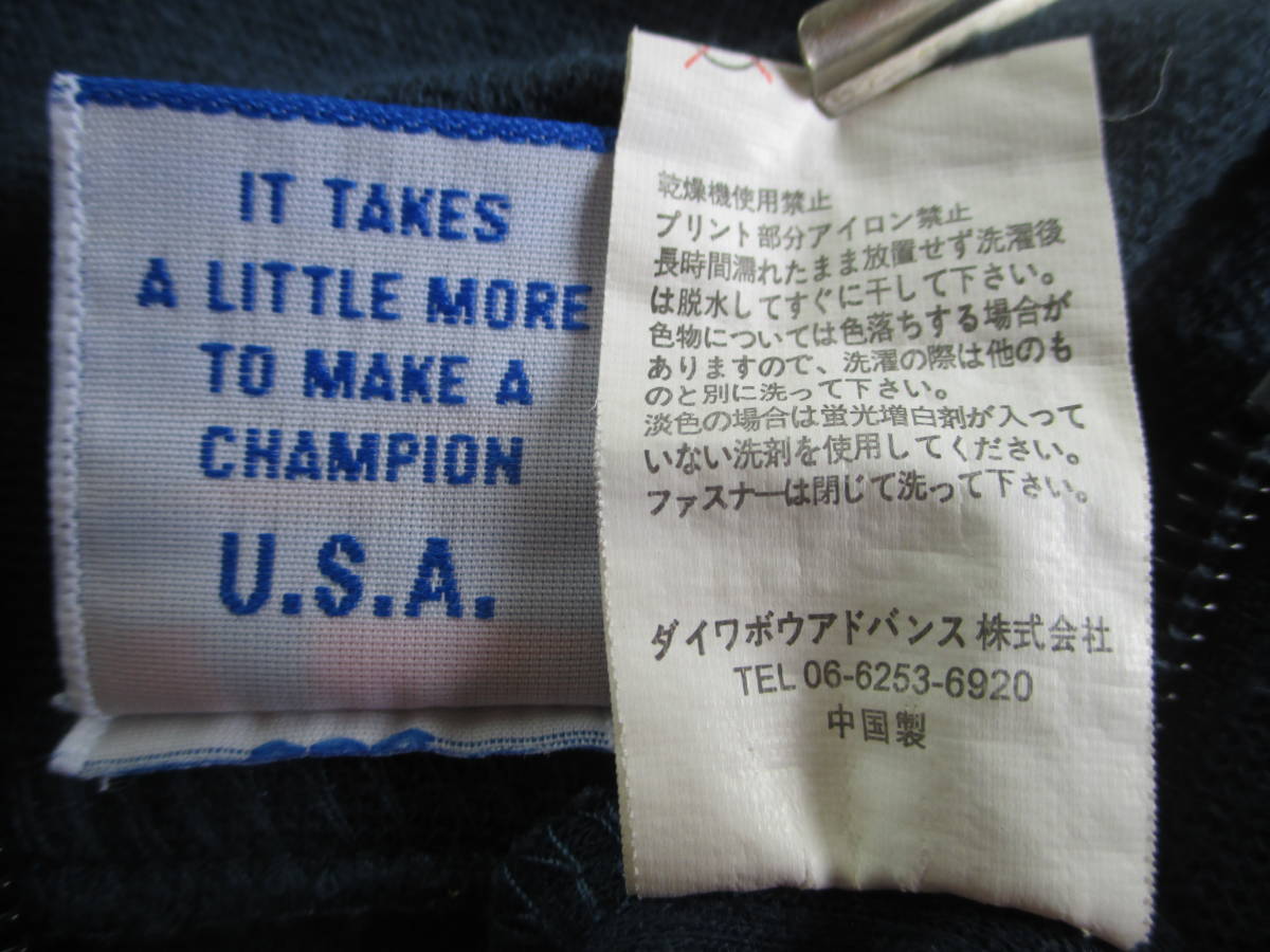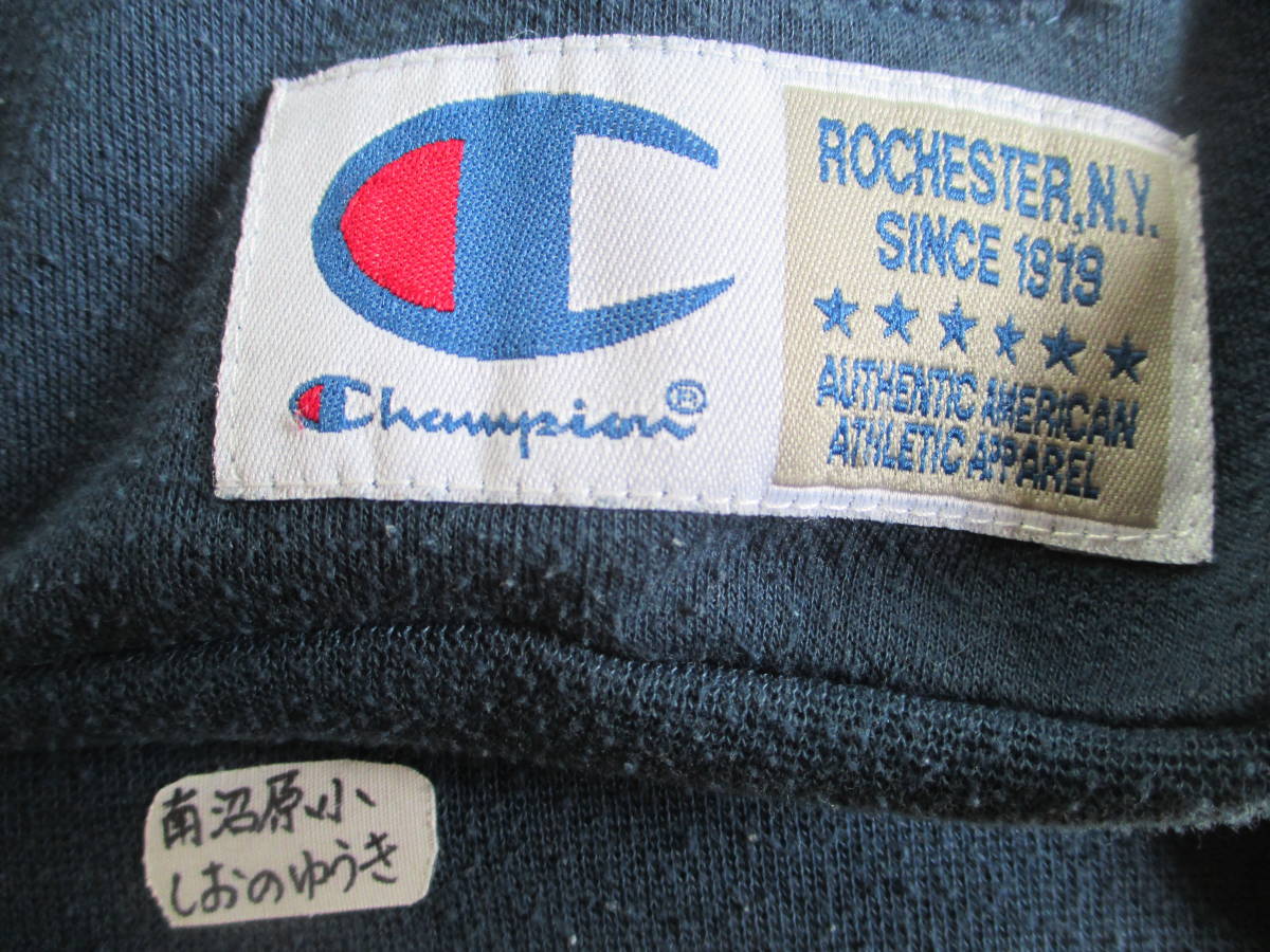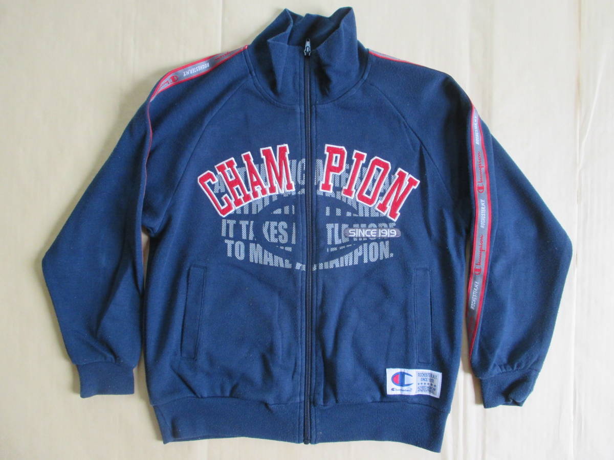 Champion キッズ 長袖 ワッペン ロゴ プリント フルジップ スウェット 紺 140 チャンピオン 子供用 トレーナー