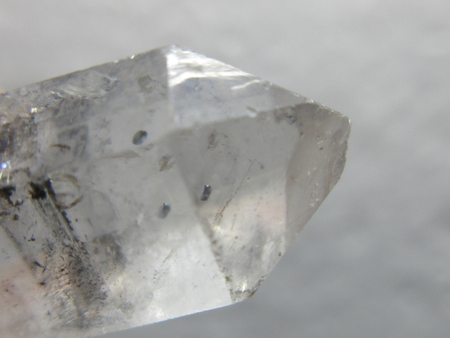 ご覧のように主に両端がポイント(ダブルターミネーター) となっており、内部に黒い内包物(炭素やマンガンと言われる) や太古の水を湛えていることが多い、大変に魅力的な水晶です。