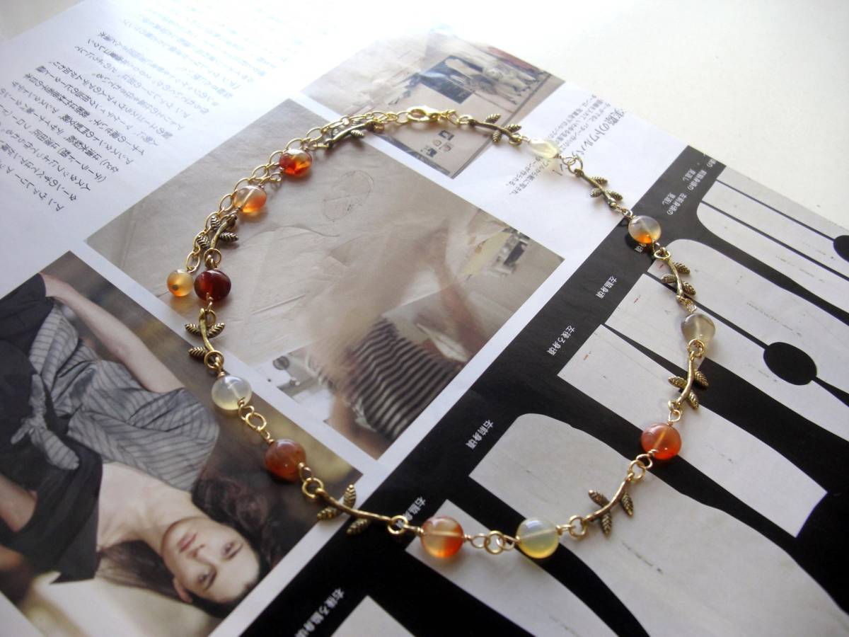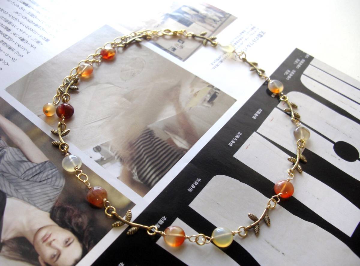 着ける幸せ・・シリーズです♪カーネリアン見本帖・・オレンジ・ブラウン系・・シックな秋色のネックレスです♪深いオレンジ、キュートなオレンジ、やさしいベージュ、様々な 色合いがキュートなカーネリアンです♪9ミリのコインのカーネリアンはキュートな枝チャー ムやデザインチェーンを合わせました♪長さは全長50センチ位で調節自由です♪チョーカー風にされても可愛いです♪お揃いのネックレスやブレスレットやイヤリングも出品しています♪シンプルで合 わせやすいデザインを考えて作りました♪ハンドメイドをご理解いただいてノーリターン、 ノークレームでお願いします♪