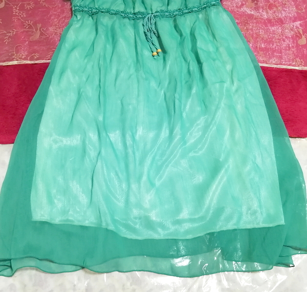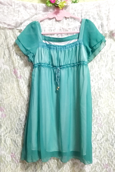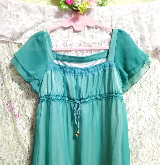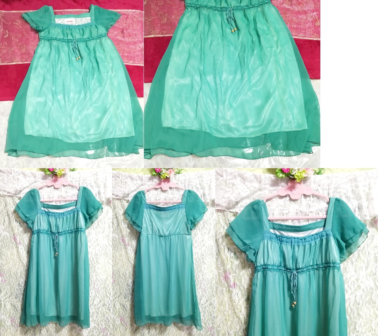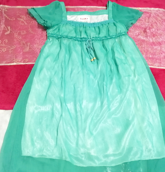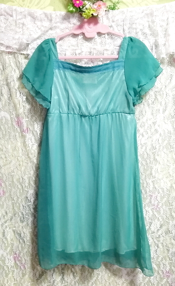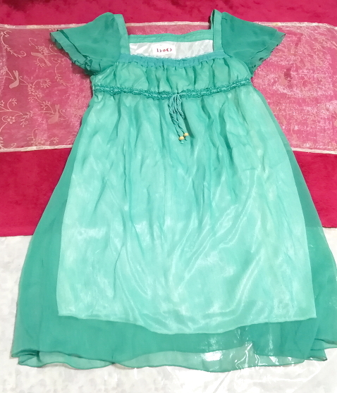 緑グリーンシフォンネグリジェチュニックワンピース Green chiffon negligee tunic dress
