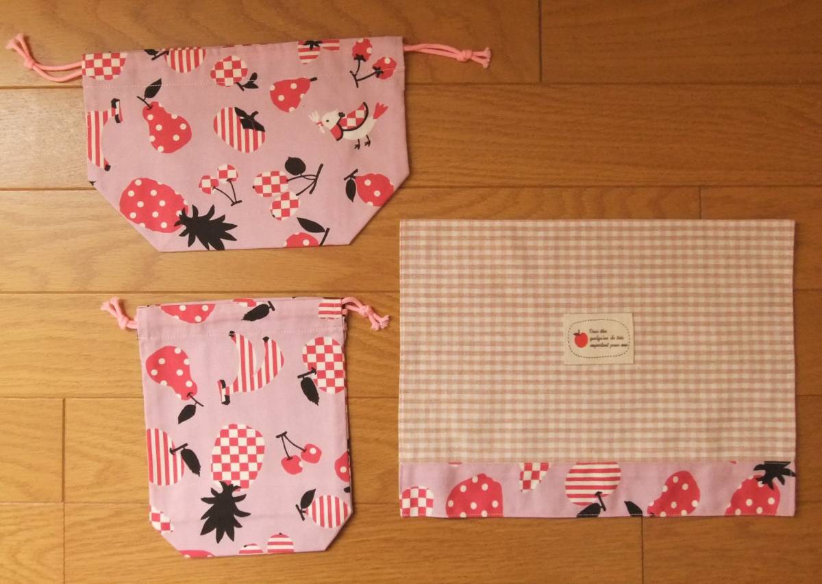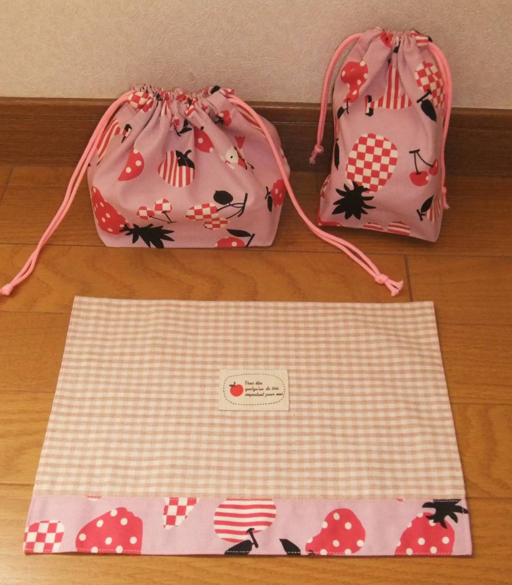★YUWA フルーツ コップ袋・お弁当袋・ランチョンマット 3点セット ハンドメイド