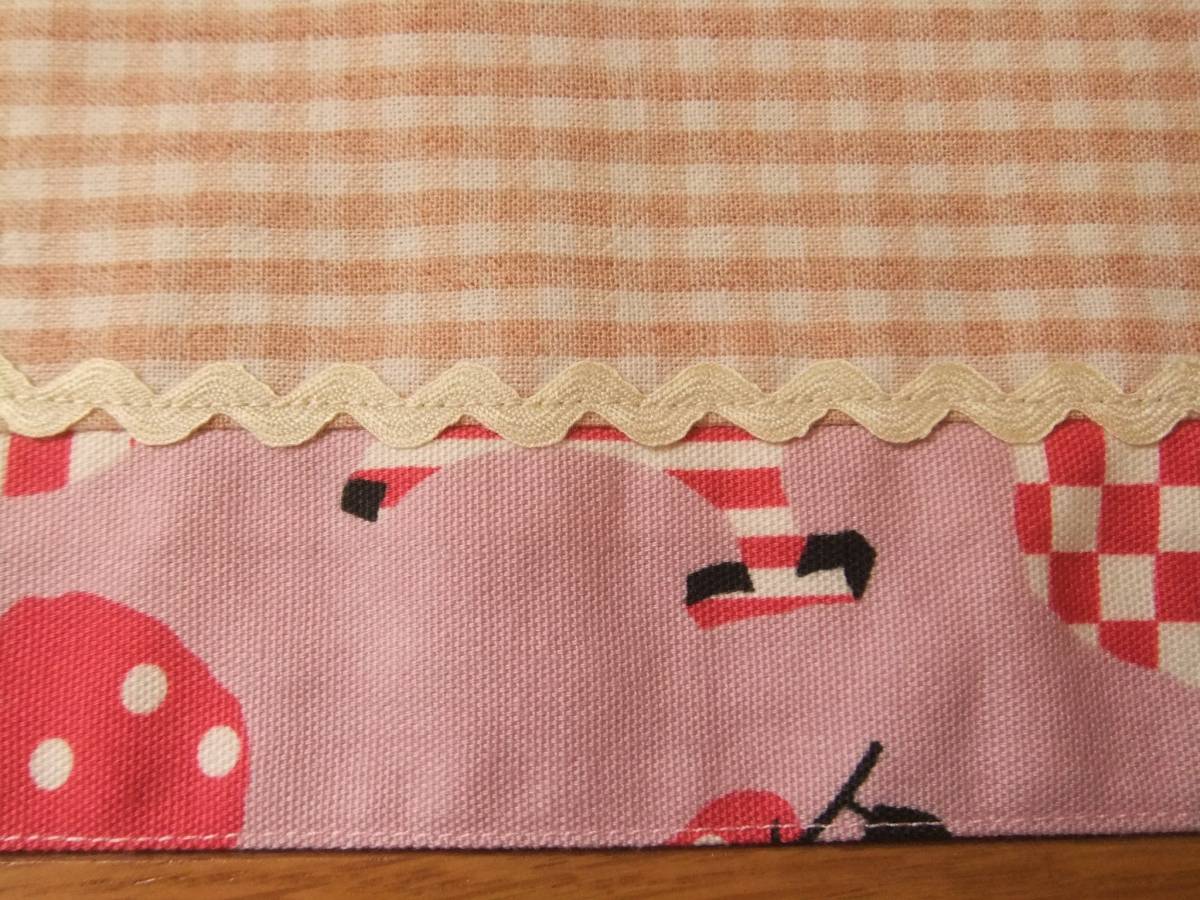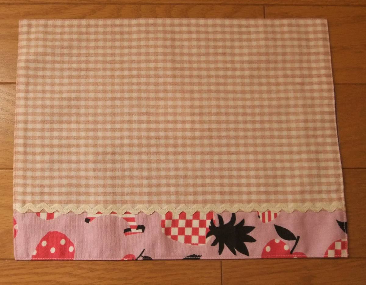 大きさはおおよそですが、約21cm×約29cmです。優しいピンクのチェック生地と組み合わせています。
