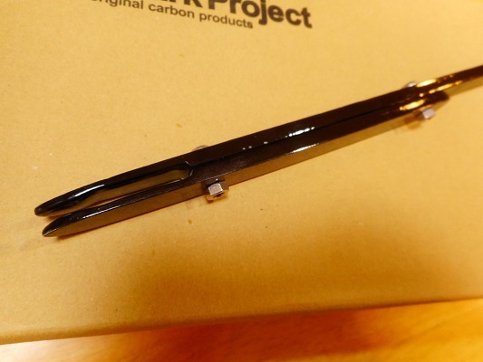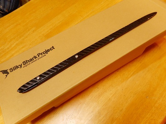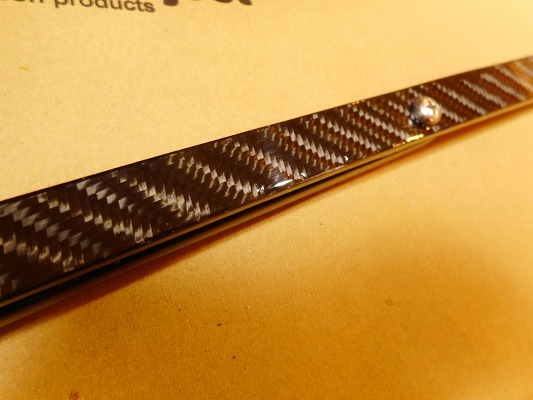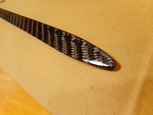 カーボン製(本物CFRP ウェットカーボン クリアゲルコート仕上げ)です。