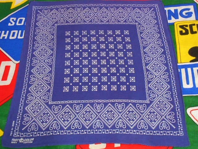 ★上鼻のエレファントマーク★Made in USA製アメリカ製Elephant BrandビンテージFAST COLORプリントコットンバンダナ紺色幾何学柄50s50年代